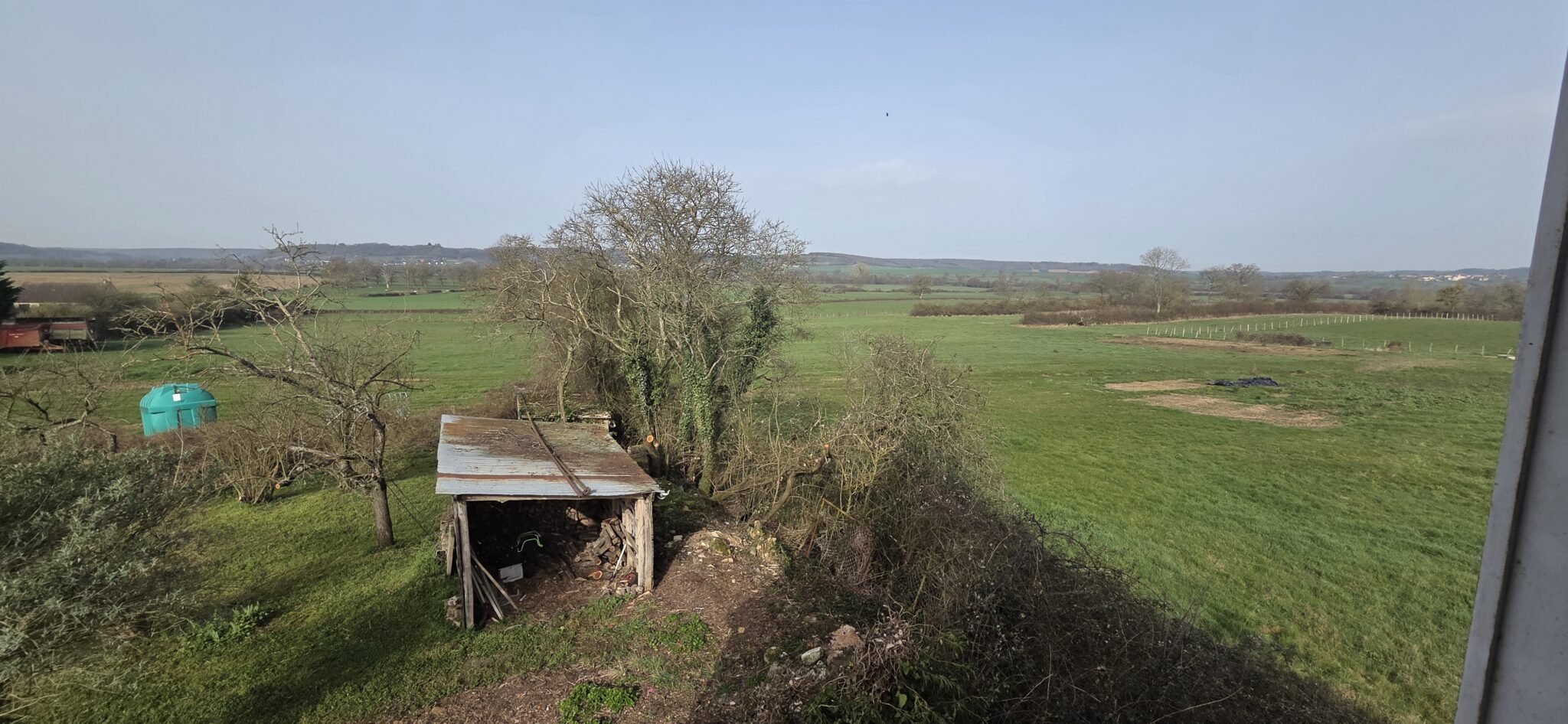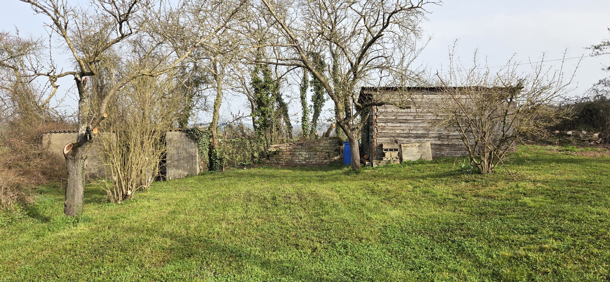 Dépendances : abri de jardin en bois à usage de bucher, abri en parpaings à usage de poulailler.
