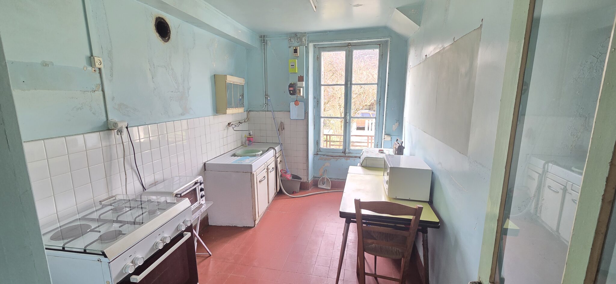 REF 2993 – Proche Clamecy, maison de 120 m² à rénover avec belle vue sur la campagne, élevée sur terre plein. Au rez-de-chaussée : Entrée, dégagement, couloir, cuisine 9 m², séjour 29 m², une chambre 15 m², Wc. Au premier étage : palier, une chambre 19 m², dégagement, salle de bains 4m², une chambre mansardée 25 m². Une remise 19m², grenier au dessus de la remise 29 m².