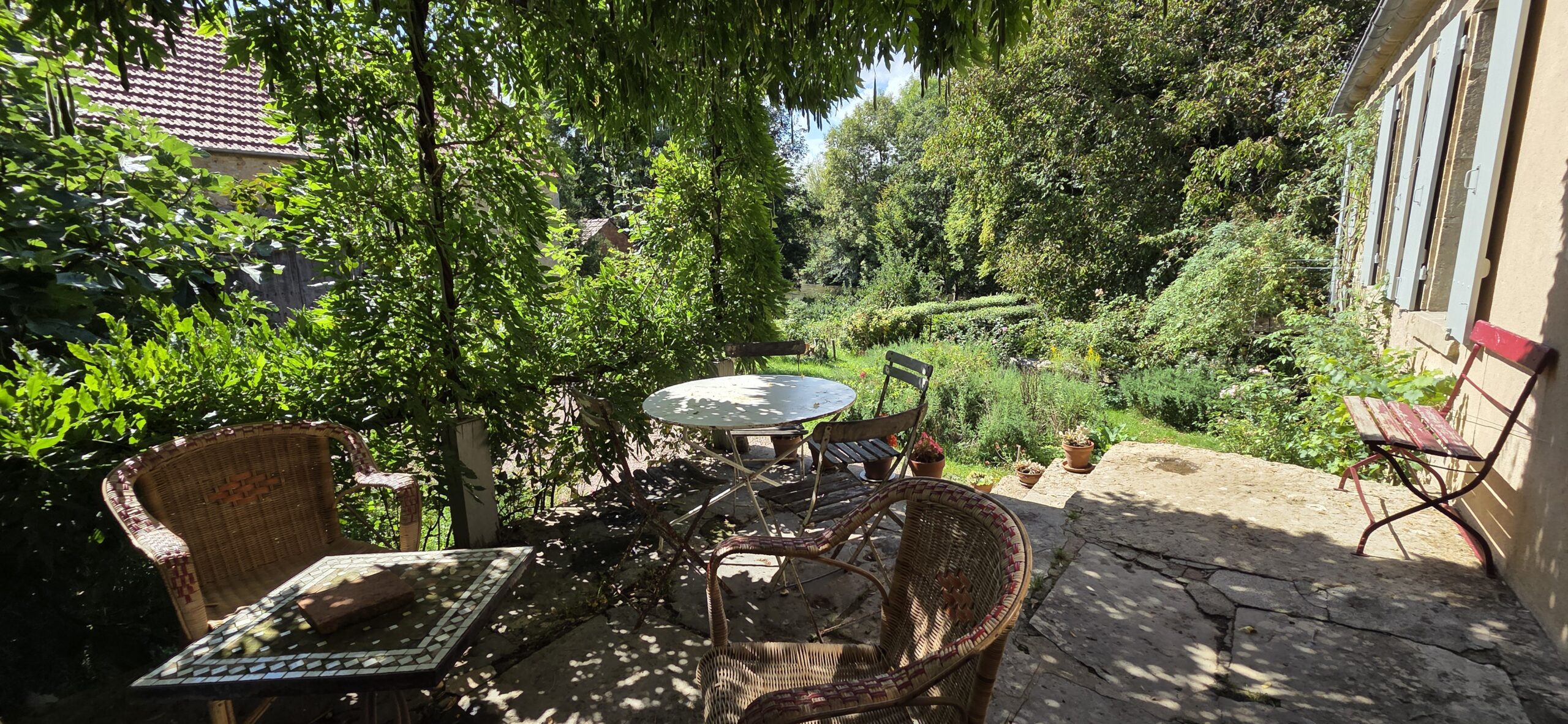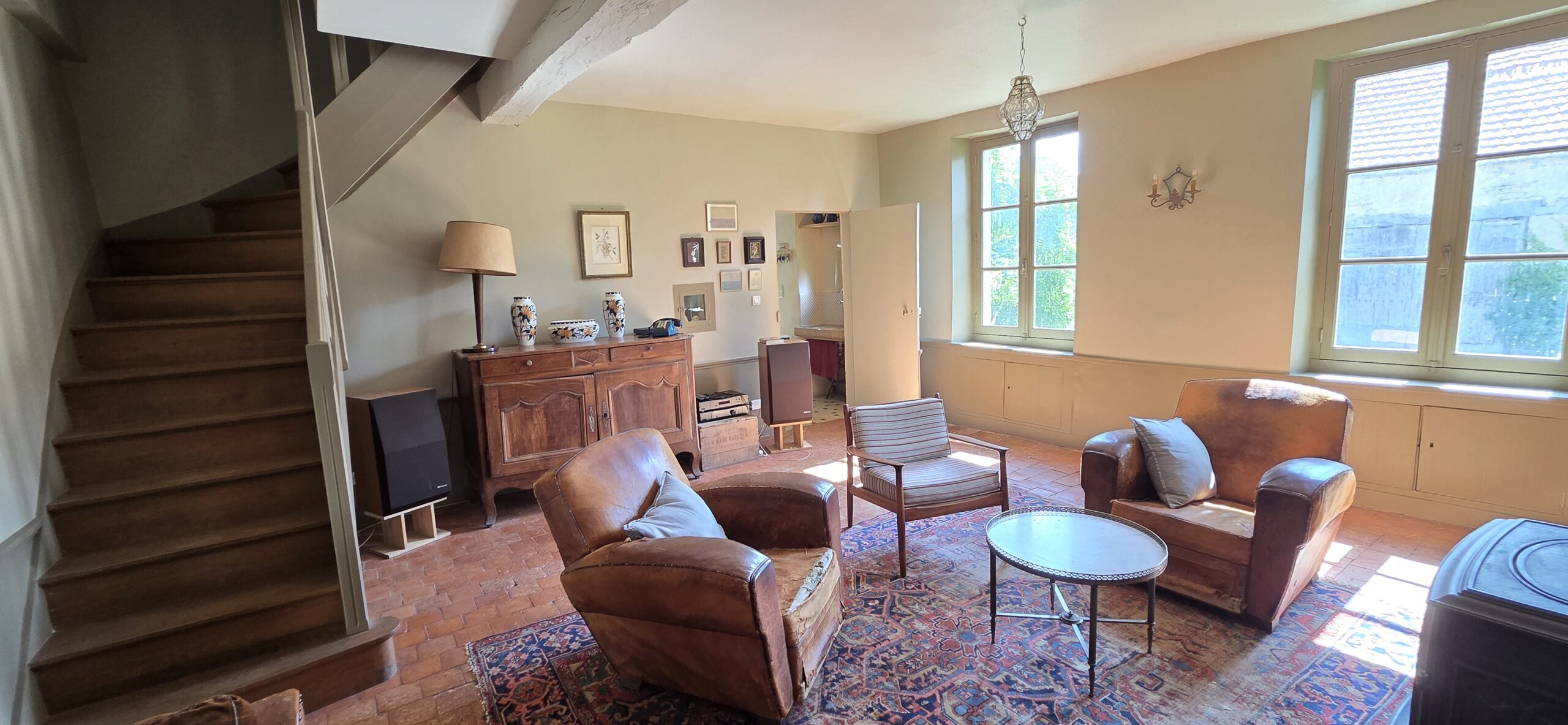 Réf. 2950 – Bourgogne Nord, au coeur de notre belle campagne nivernaise, laissez-vous séduire par le charme bucolique de ce village traversé par l’Yonne et le canal du Nivernais, proche de TANNAY, dans un écrin de verdure. Belle demeure ancienne 134 m², habitable de suite, édifiée en partie sur cave voûtée 34 m² et remise ouverte 27 m². Rez-de-chaussée : entrée sur cuisine 23 m² (pierre à évier, cheminée avec cuisinière à bois), arrière-cuisine (faisant la jonction entre les deux habitations), dégagement avec accès jardin, séjour 29 m² (tomettes, cheminée avec poêle à bois, placard), dégagement-bibliothèque, salle d’eau (douche à l’italienne), WC, une chambre 10 m², bureau 15 m² (ou chambre) avec accès balcon et terrasse. Accès à l’étage par escalier bois, une chambre 17 m² avec WC (tomettes), bureau (tomettes, charpente apparente), grenier mansardé (plancher bois, arrivée d’eau et évacuations). Toiture en petites tuiles de Bourgogne, simple et double vitrage, chauffage bois et électrique. Deuxième habitation 110 m², élevée en partie sur un cellier, chaufferie-atelier 28 m² et une pièce de transition avec évier. En rez-de-rue : entrée, une chambre 14 m² et buanderie 15 m². A mi-étage : dégagement, cuisine avec balcon 9 m², séjour 25 m² (cheminée avec poêle à bois), WC et cabouin. A l’étage : dégagement, une chambre 18 m² avec balcon, salle de bains et grenier au-dessus. Toiture en tuiles mécaniques, chauffage central fuel, simple et double vitrage. Dépendances séparées : étable 28 m², grange 29 m² et écurie 40 m², fenils sur le tout. Remise à l’arrière 21 m², petits toits et poulailler. Très beau terrain 1 929 m², paysagé, arboré, potager, bordé par la rivière et clos. Café-épicerie, restaurant sur place. Localité tous commerces et services à 7,5 km.