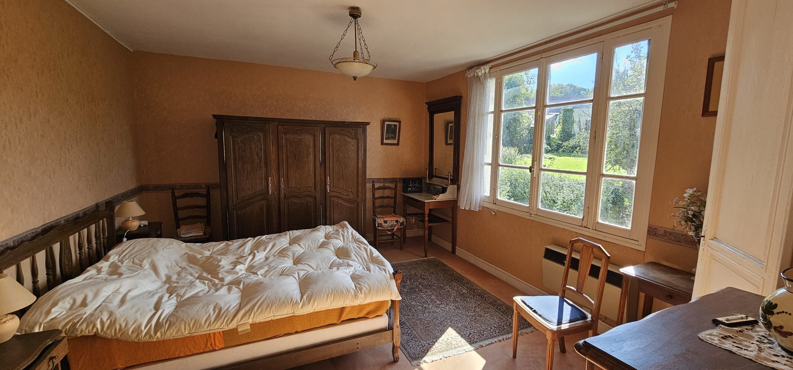 Réf. 2952 – Bourgogne Nord, CLAMECY, à deux pas du centre ville – BELLE MAISON PIERRE 151 m² habitables, entrée sur couloir, salon 21 m² (parquet, cheminée avec poêle bois), salle à manger 17 m² (porte-fenêtre accès jardin), bureau (ou chambre) 16 m² (parquet chêne, boiseries, cheminée marbre), dégagement, cuisine, salle d’eau-WC, véranda. Accès à l’étage par escalier bois : palier, couloir, trois chambres (16 m², 22 m² et 17 m²), dégagement, WC, grande salle de bains. Grenier au-dessus sur le tout. Toiture en tuiles de Bourgogne et tuiles mécaniques, double et simple vitrage, chauffage électrique et bois. Deux garages 16 m² et 25 m², préau, deux caves. Beau terrain arboré et clos avec puits 1 194 m². Tous commerces et gare sur place.