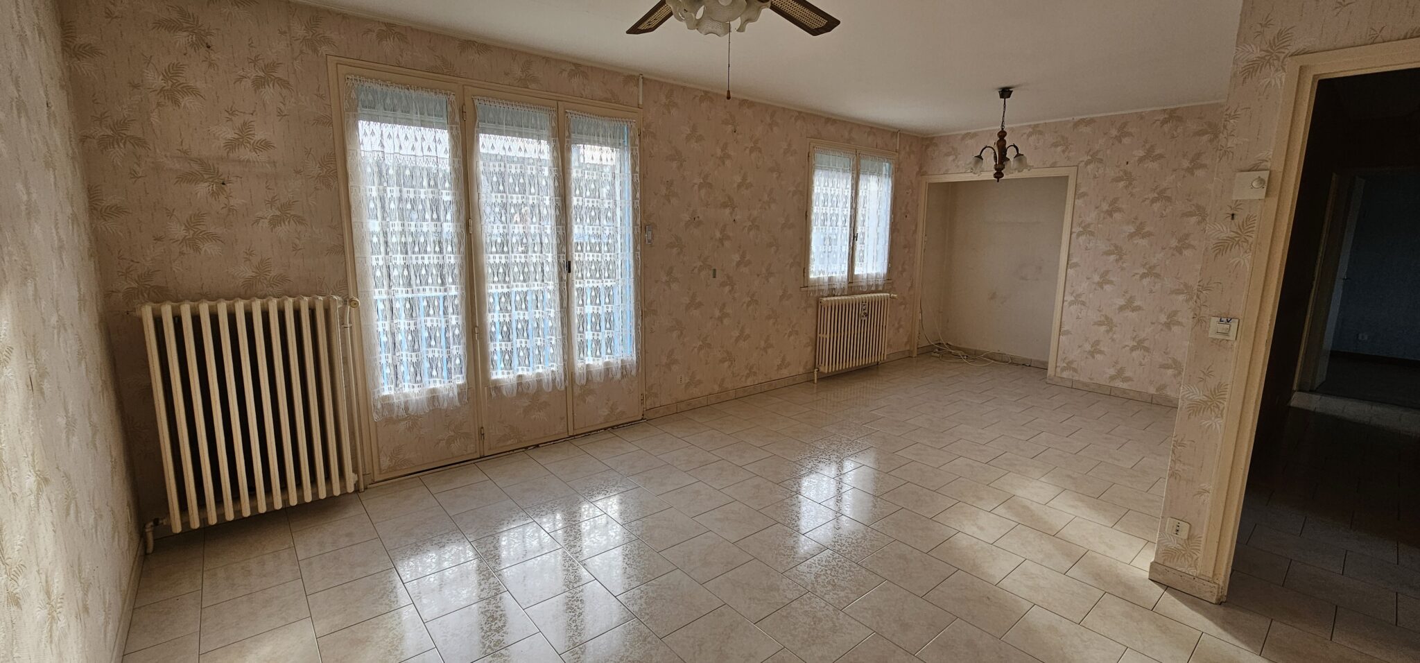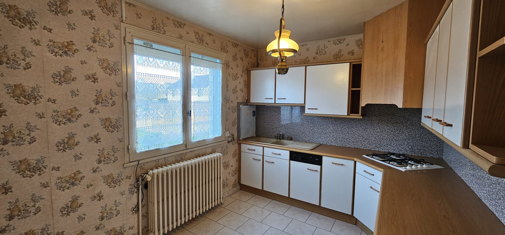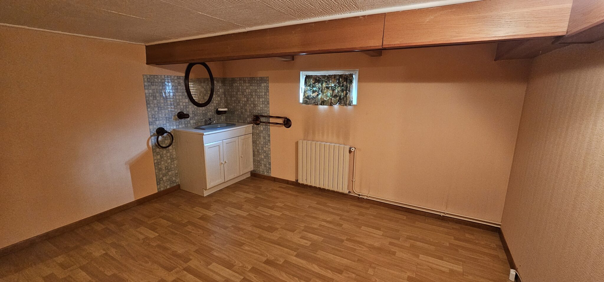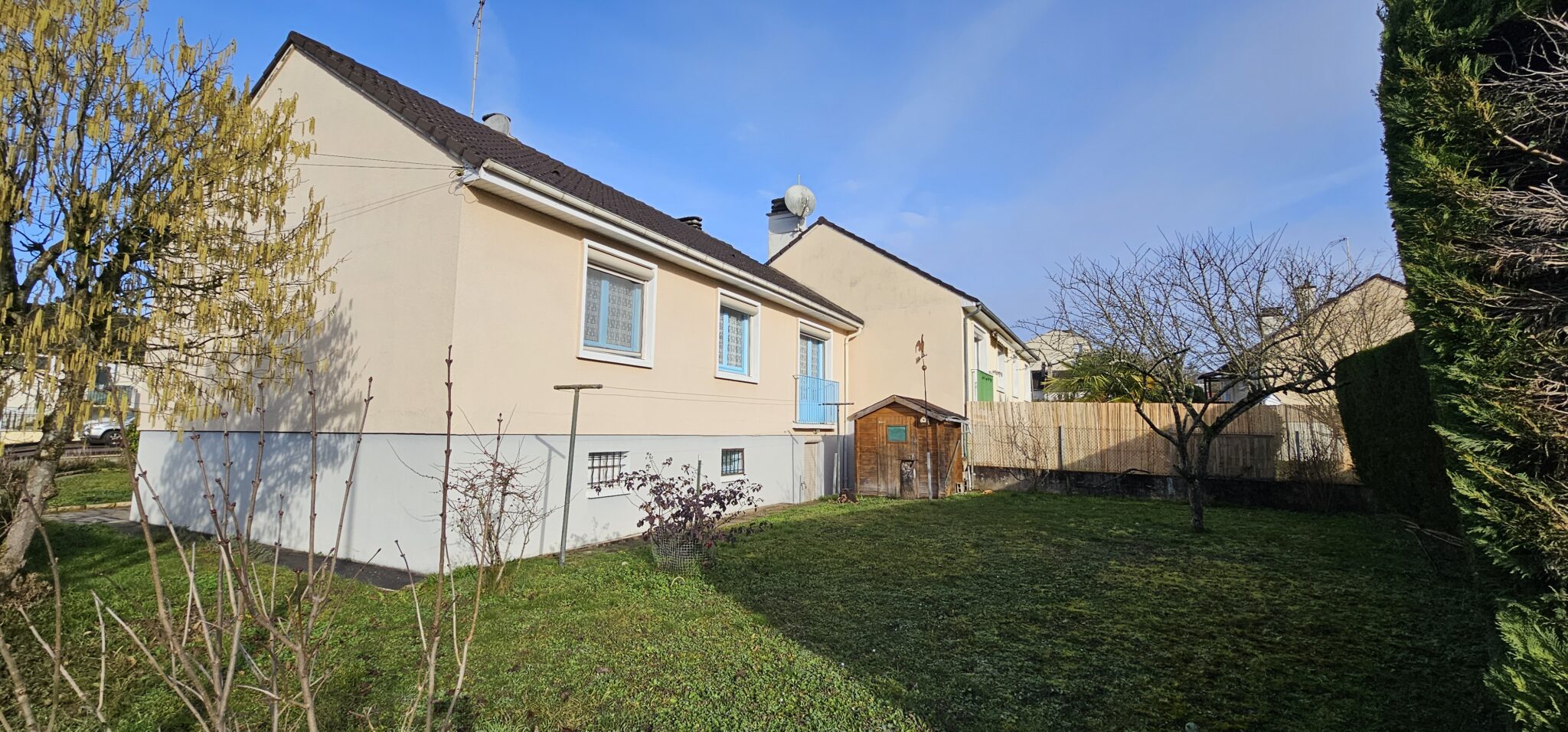 Réf. 2978 – Bourgogne Nord, CLAMECY, au calme, PAVILLON SUR SOUS-SOL, 82 m² habitables, entrée par véranda, couloir avec placard, cuisine aménagée carrelée 8 m², salle à manger-salon 25 m², salle d’eau, WC, deux chambres 9,60 m² et 10,85 m² (avec placard), parquet flottant, combles perdus au-dessus isolés. Accès sous-sol depuis l’intérieur : garage 23 m² (dalle béton, porte en bois avec volet électrique et sortie à l’arrière sur jardin), cellier 11 m², chaufferie 14 m², une chambre aménagée avec lavabo 12,60 m² (parquet flottant), WC (sanibroyeur), dégagement. Double vitrage, volets roulants électriques, chauffage central gaz de ville, rafraîchissement à prévoir, cour et jardin clos sur 427 m².