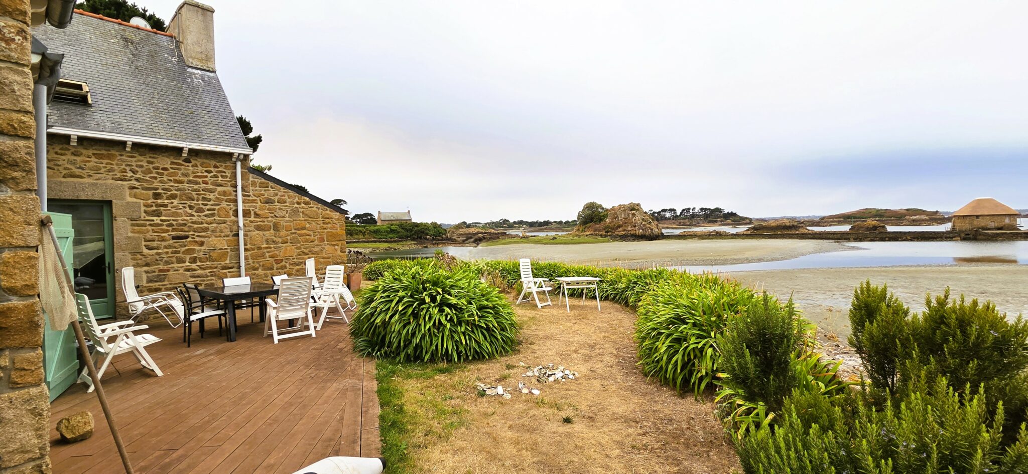 Réf. 3004 – Idéalement située sur l’Ile de Bréhat, au bord de l’étang du Birlot, AUTHENTIQUE PROPRIETE 121 m² habitables : salle à manger-salon, cuisine aménagée, arrière-cuisine aménagée, WC, salle de bains (baignoire, douche), une chambre avec lavabo, accès jardin, vue imprenable sur l’étang et le moulin à marée. A l’étage : quatre chambres, WC avec lavabo, salle d’eau-WC. Nombreux espaces de rangement. Combles. Chauffage électrique, double vitrage, cour et jardin, terrasse. Appentis en pierres. A 5 minutes des commerces, environnement exceptionnel.