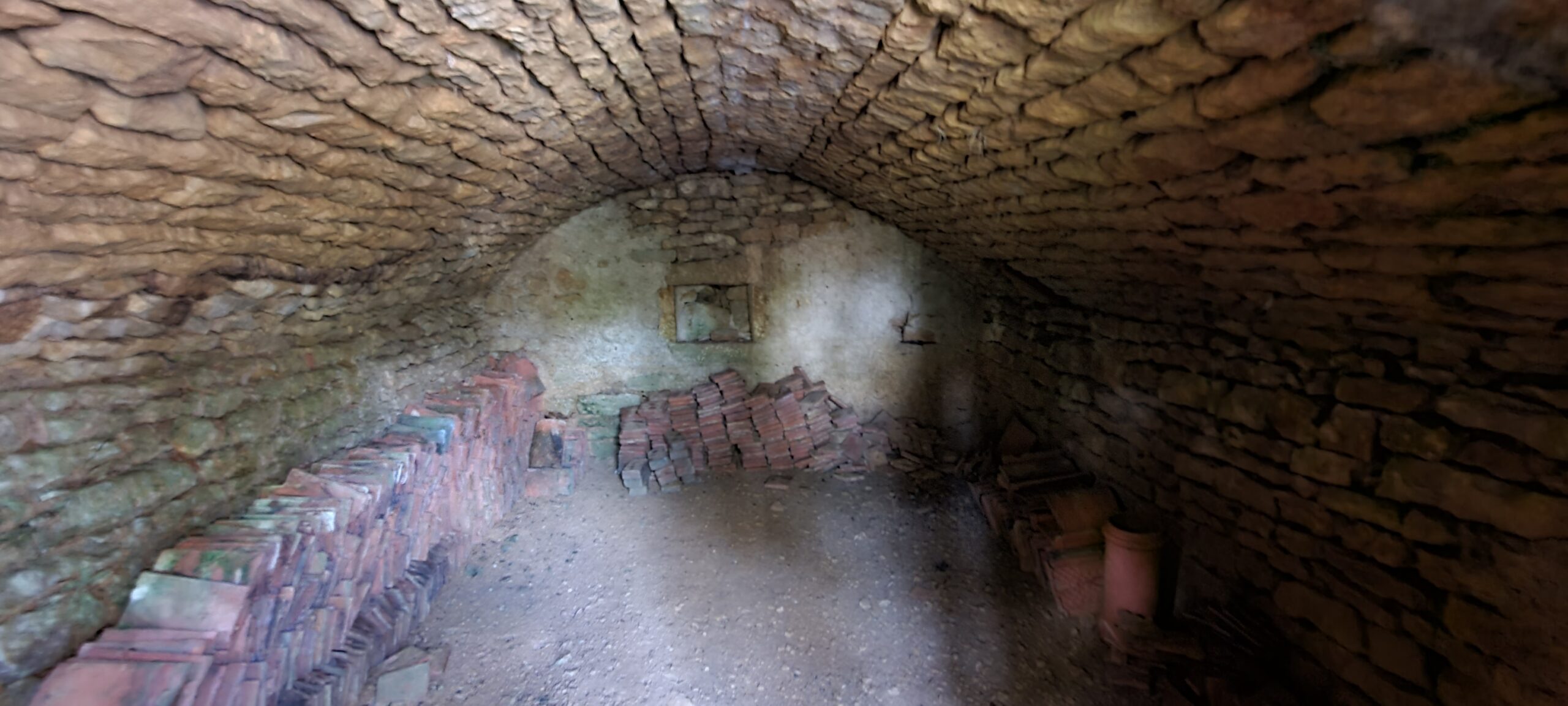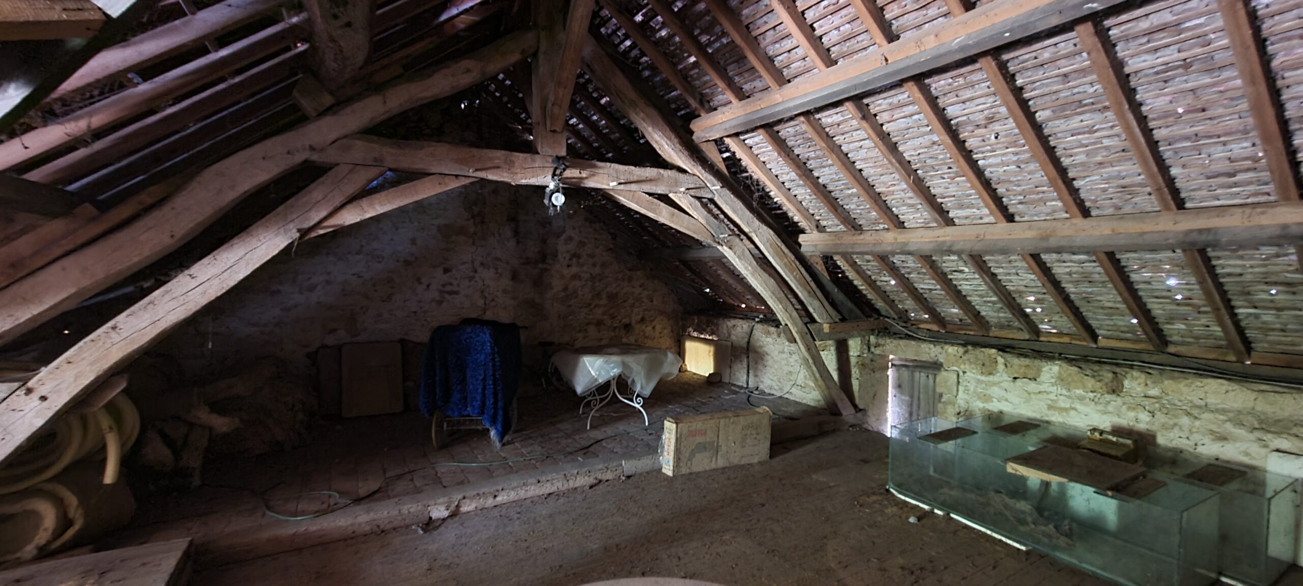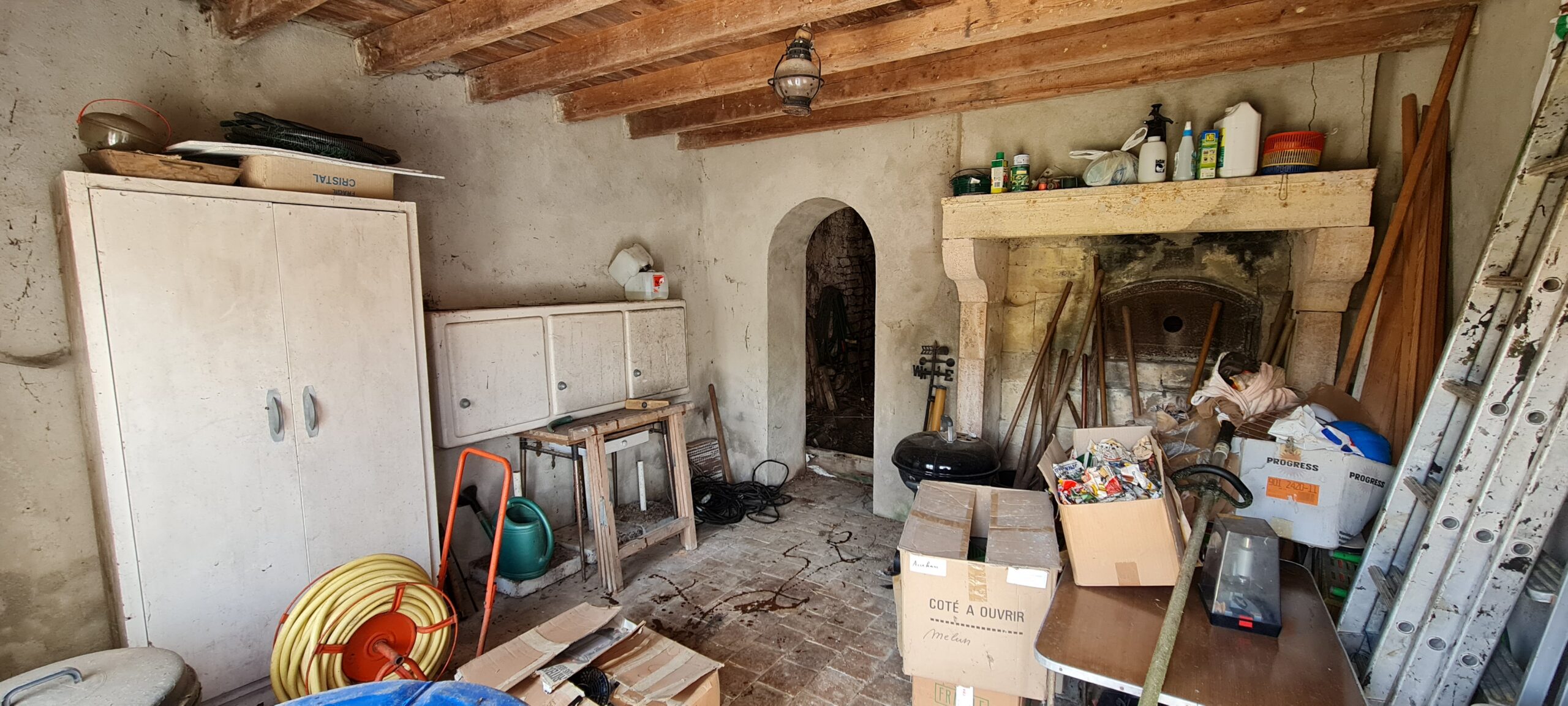 2/ Une ancienne maison d’habitation en face de la maison principale : deux pièces 15 m² et 4 m² (cheminée, four à pain). A l’étage : grenier. Cave voutée sur le jardin 17 m²